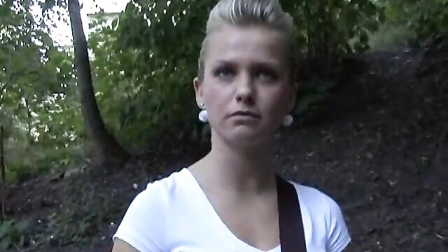 Description:The fidelity test project runs smoothly, but I got a little nostalgic and wanted to try something classic. Just to grab my cam and go hunting in the streets, just like in the good old times. Tomy, our founding father, really liked Petrin and always scored when he went there. So I thought I should try these venerable grounds too and went to the very places that shaped history. And Petrin really is a wonderful place, full of beautiful girls and women. But after a few tries it seemed like I'll be going home with my balls still full. And then I chanced upon an unbelievable woman, or rather a little girl. Almost like a kitten or fledgling, she looked like a 15 year-old. Her name was Katerina, she was strikingly beautiful and it now comes to my mind that I didn't even check if she was 18. I hope I won't be wearing prison sweatpants because of her! Katerina was really cute, but also a little slow. She even asked me if, by chance, I happen to be the guy from CzechStreets… funny, isn't it? Nevertheless, it took some convincing. Almost five hours! But because she really likes money, she let me fuck her for only 10.000 Czech Crowns! And all the time, she was getting calls from her boyfriend Lukas (seemingly a jealous freak), who didn't buy the lies about her being with her mom. You'll hear their whole insane phonetalk in the video, so go ahead, download and enjoy. This is hard reality!
